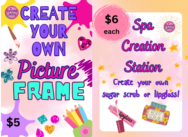 Create a personal lip gloss or 4×6 photo frame with The Friendship Factory available onsite for an additional fee of $5-$6 per item.